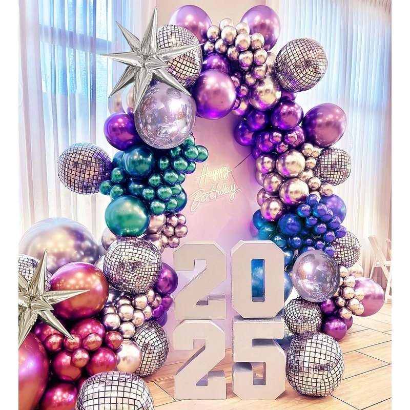 Metallic Balloon garland kit 135Pcs Disco Party decorations with Chrome Blue Red Purple Silver Disco ball balloons for 80s 90s Themed Birthday graduation 2025 new year Party eve Decorations