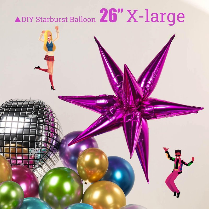 Metallic Balloon garland kit 150PCS Hot Pink Purple Green Blue Silver Gold Latex starburst 80s 90s Disco ball Party Balloons for Birthday Graduation last bachelorette Decoration new year eve supplies