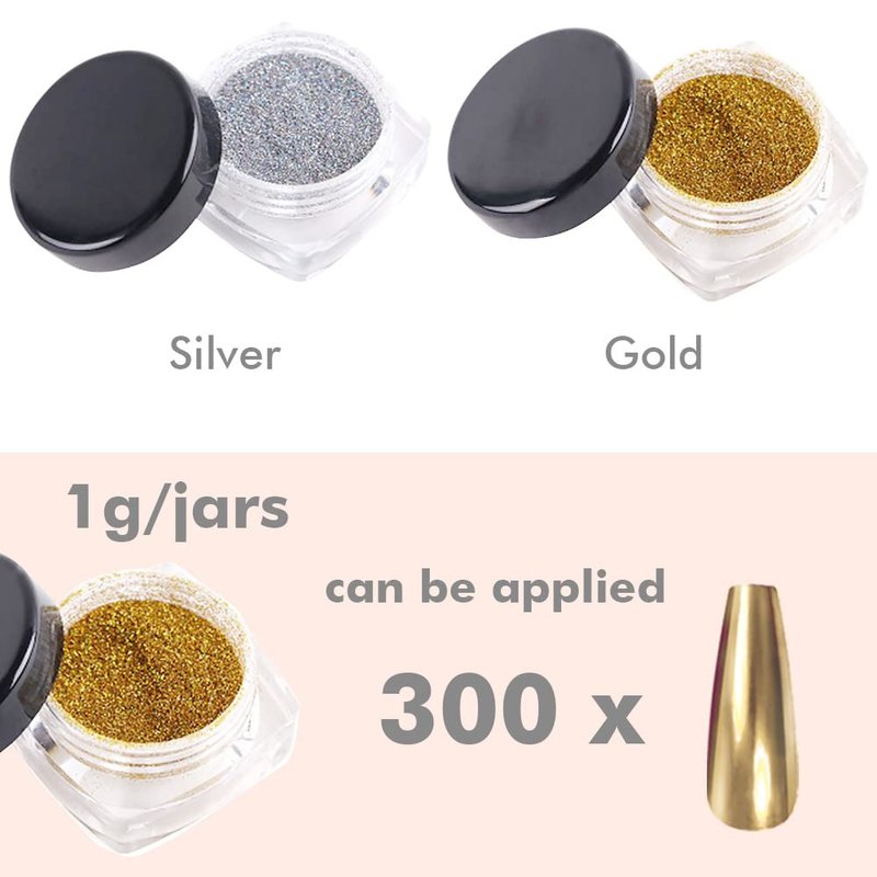 Metallic Chrome Powder Hisight 2 pcs Nail Art Mirror Glitter Chrome Pigment Powder Dust Nail Sequins Gold Silver Color Nail Art Tools with Sponge Stick ×2 (Silver Gold)