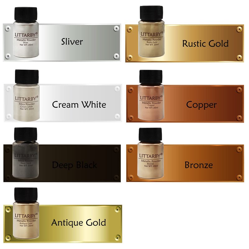 - 5 Classic Metallic Fine Glitter Pigments: Our metallic powder set featuring rose gold mica powder, antique gold mica powder, rustic gold mica powder, copper mica powder, and silver mica powder. All of the pigment colors are the most common and favored choice, widely used in painting arts, epoxy resin coloring supplies, etc.