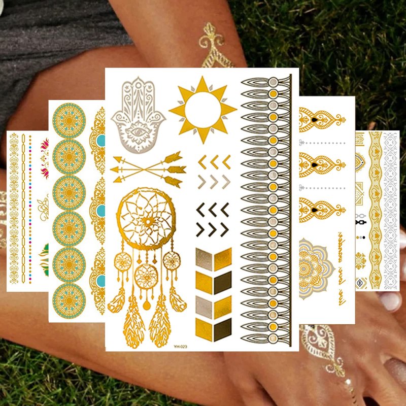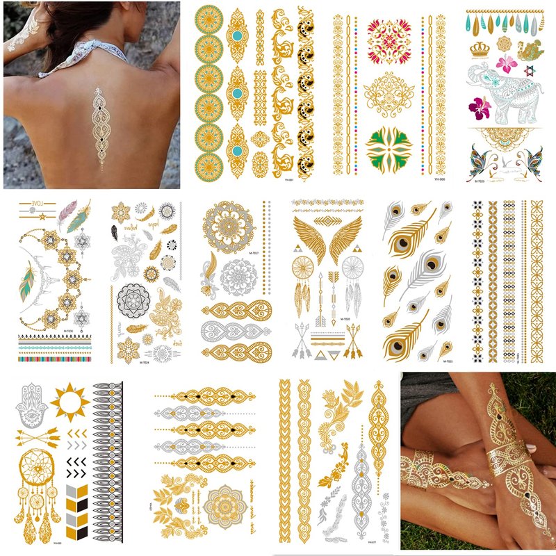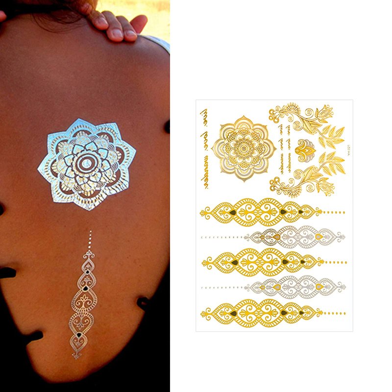 - Premium Quality: 12 Sheets exquisite gorgeous metal tattoo designs, with very high quality. Nice metallic shine and these metallic temporary fake tattoos will stay on for several days. Great & fun metallic temporary tattoos, many designs for you to choose.