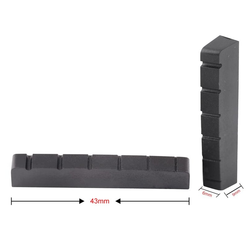 Metallor 6 String Graphite Guitar Nut Pre-Slotted Top Nut Compatible with Les Paul LP SG Style Electric Guitar or Acoustic Guitar Black 43 x 9 x 6mm Set of 2pcs.