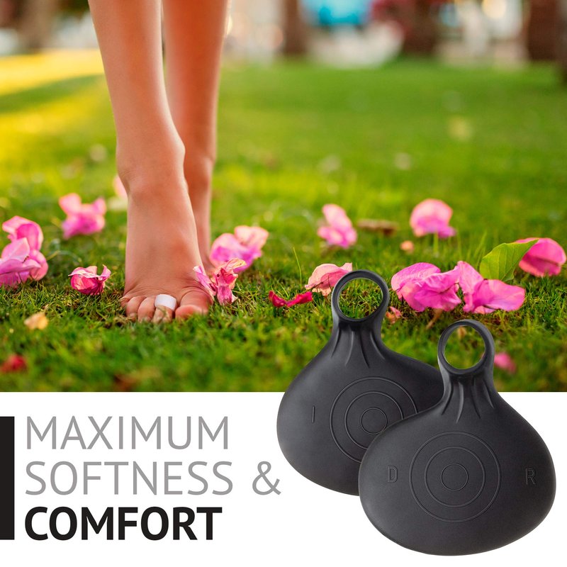 Ball-of-foot cushions help to soften and improve pressure distribution on the forefoot, which facilitates pain relief and prevents metatarsal, bunions, blisters, calluses and other foot problems