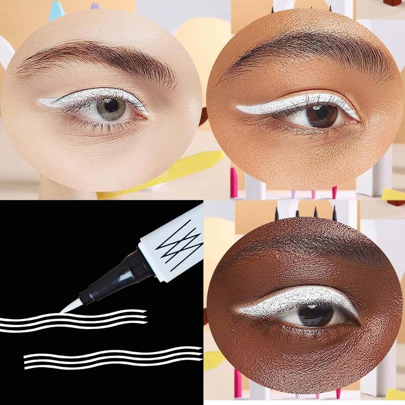 Metfdlaig White Liquid Eyeliner Pencil, Waterproof & Smudge-proof Ultra-Fine Brush Tip Eye Liner, Quick Drying Formula Long Lasting High-Pigmented Up to 24 Hours Eye Makeup Wear(White)
