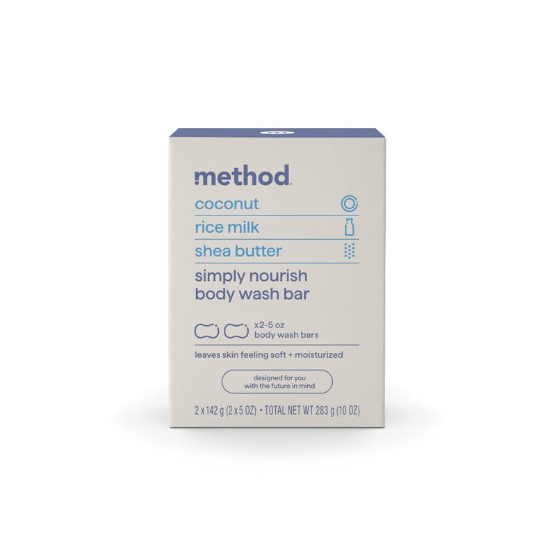 Method Bar Soap, Simply Nourish, Coconut, Rice Milk + Shea Butter notes, Plastic Free, 2 bars, 5oz each
