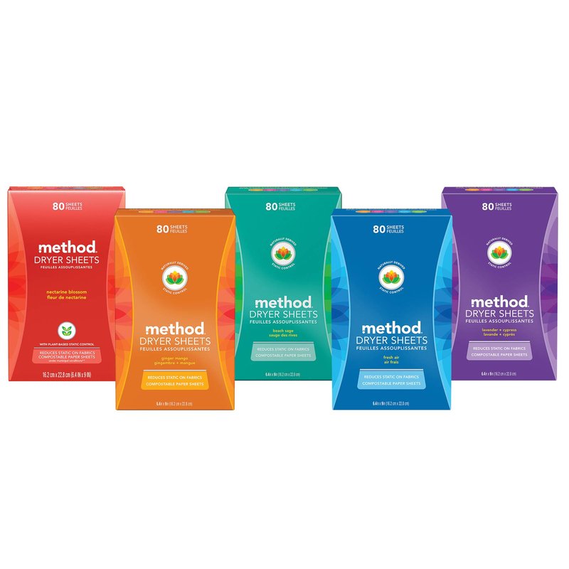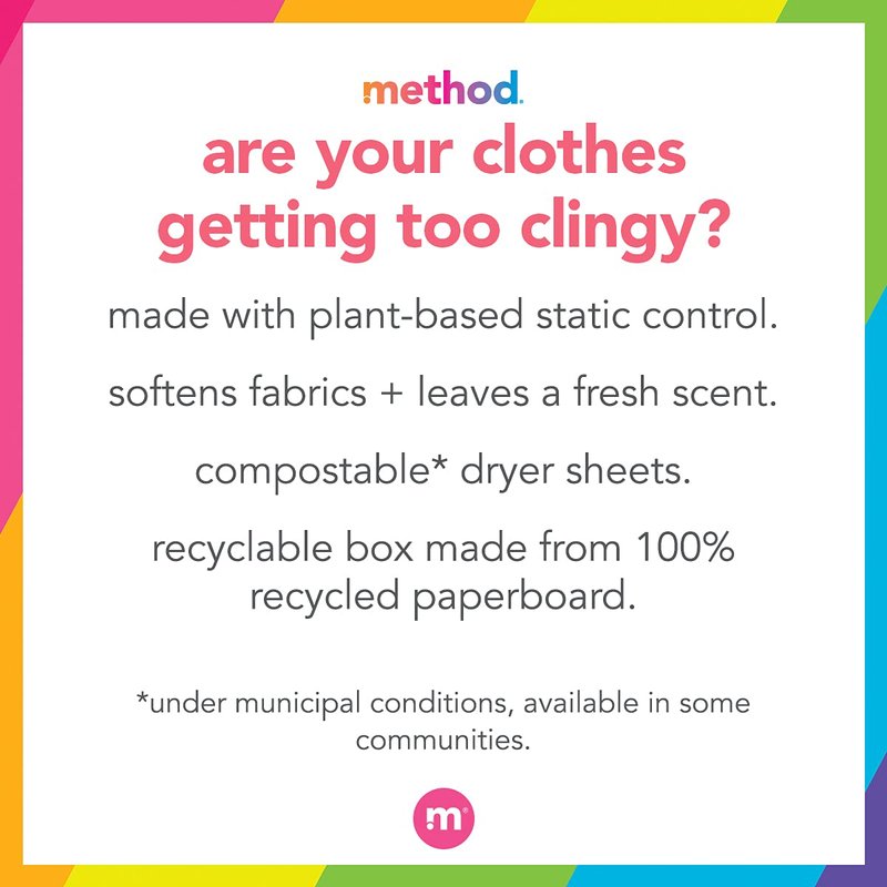 Method Dryer Sheets, Ginger Mango, Fabric Softener and Static Reducer, Compostable and Plant-Based Laundry Essentials, 80 Count (Pack of 1)