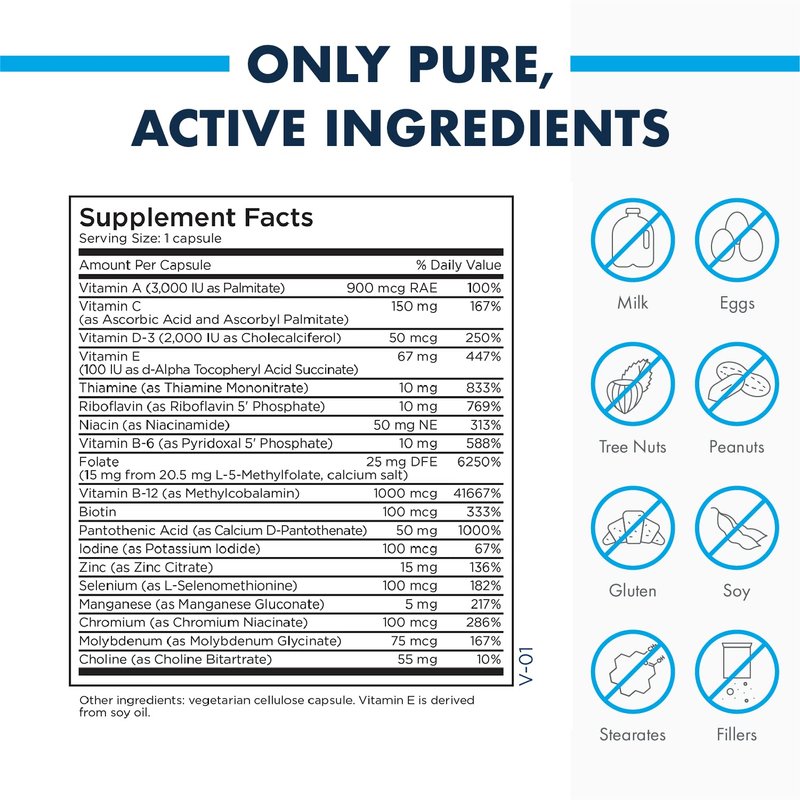 - Nutrients for Mood, Energy & Immune Support - Enhanced with immune-supporting vitamins for women and men like zinc, thiamine, vitamin C, and 2000 IU of vitamin D3. Promote healthy energy levels with a full array of B vitamins.