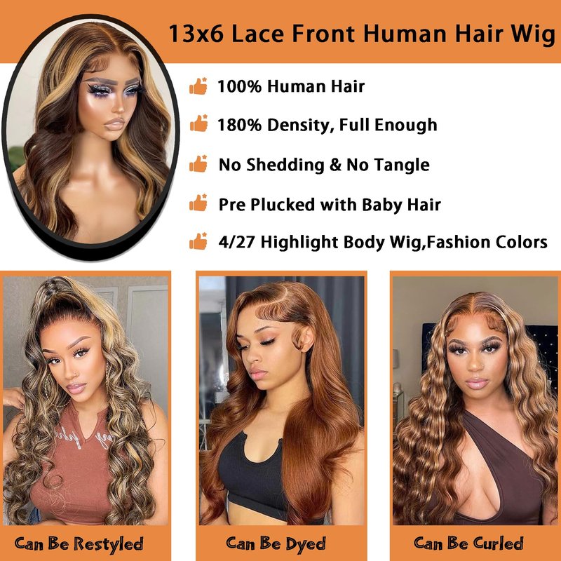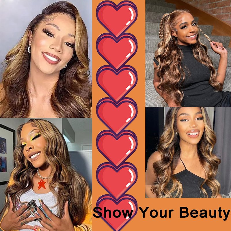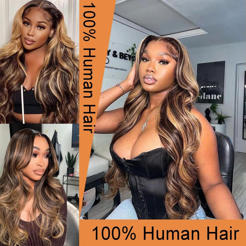 - Honey Blonde Wig Human Hair Quality:Highlight Lace Front Wig Human Hair 13x6 HD Lace Front Wigs Human Hair;We Choose the Best Human Hair to Make the Body Wave Wigs;to Ensure that Every Body Wave Wig You Receive Is a Qualified Product
