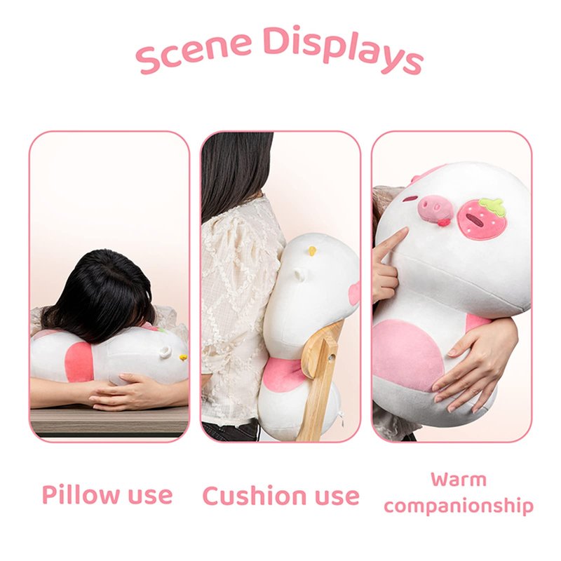 - Strawberry Cow Pillow Cute Design: With its lovely and lifelike Cow stuffed animal pillow, a smiling appearance, and soft fabric. All bad emotions and work stress will disappear when you embrace stuffed toys! This axolotl plush can accompany you or your friends through lonely times.