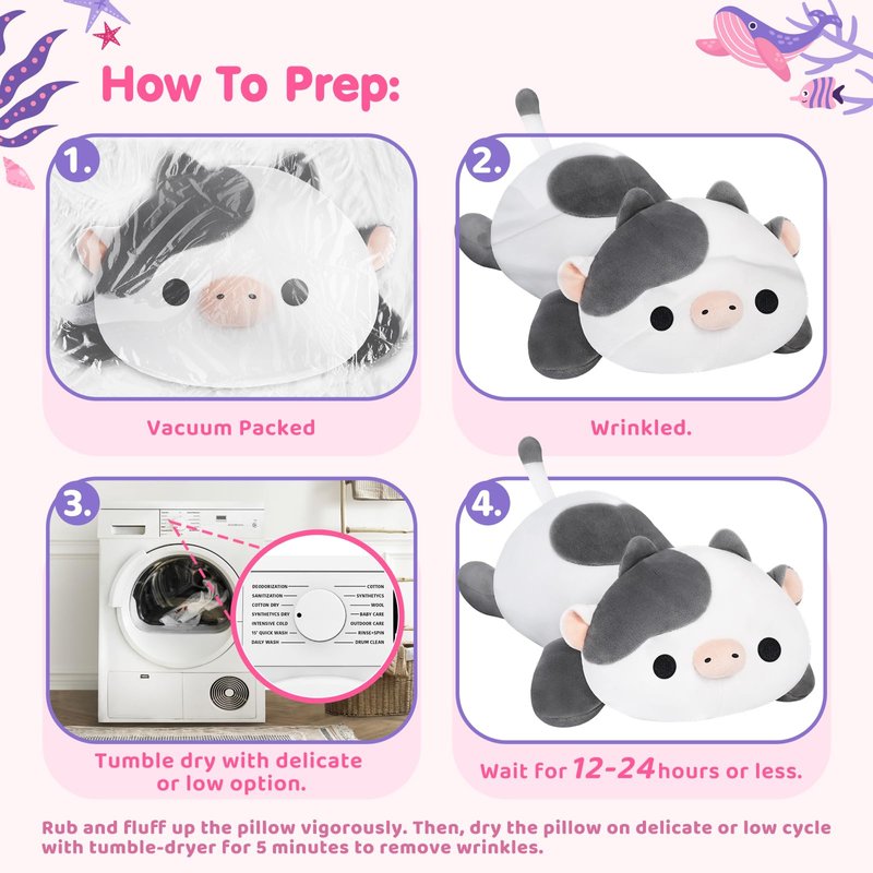 - Kawaii Plushies Choice: 13 inches stuffed cow plush toy with a suitable small size, it is the ideal present for each anniversary. Surprise your lover, daughter, granddaughter and girlfriend with this adorable, unique and soft plush toy pillow.
