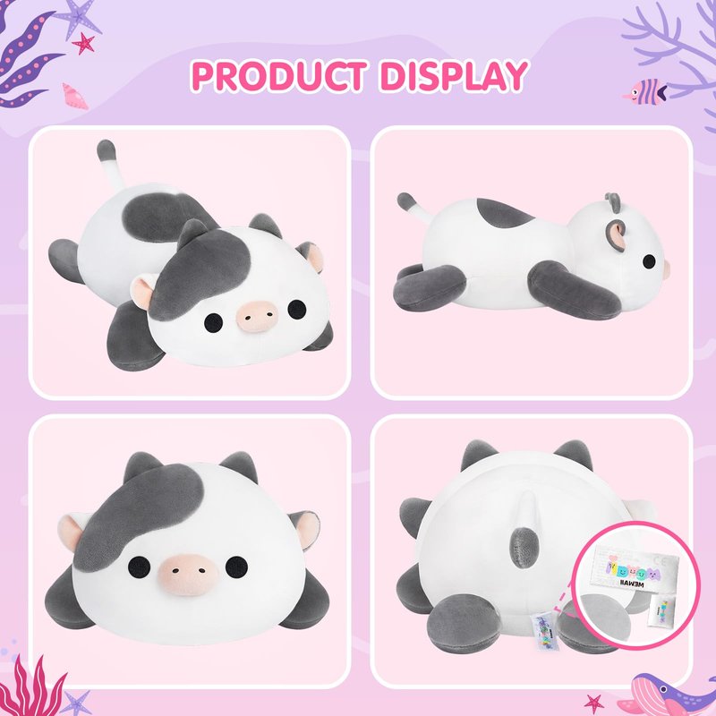 - Soft & Cute Pillow: Mewaii cow plush pillow combines elastic fibre and good stitching to provide you with the best cuddling sense. Filled with high elastic soft fibre, our stuffed toy can provide you with a delicate feeling after a stressful work or study whether from touch or sight.