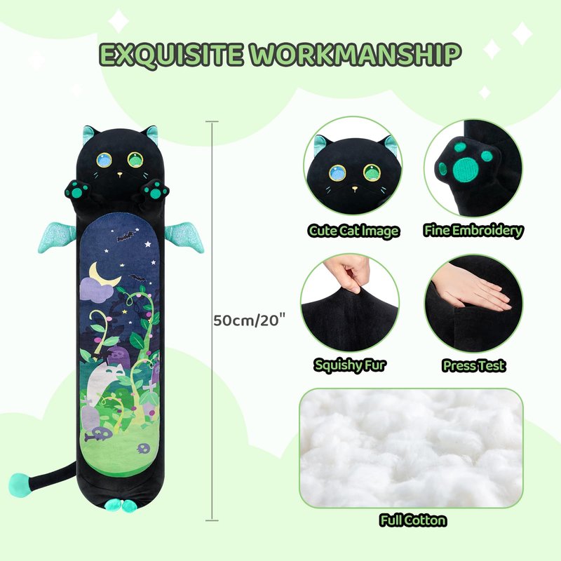 - Super Soft Black Cat Plush: Our kawaii sleeping plush pillow toy is elaborately made of spandex super soft fabric and filled with down cotton. When you hold it in your arms, you will feel comfortable and elastic, with a smooth feel and delicate texture.