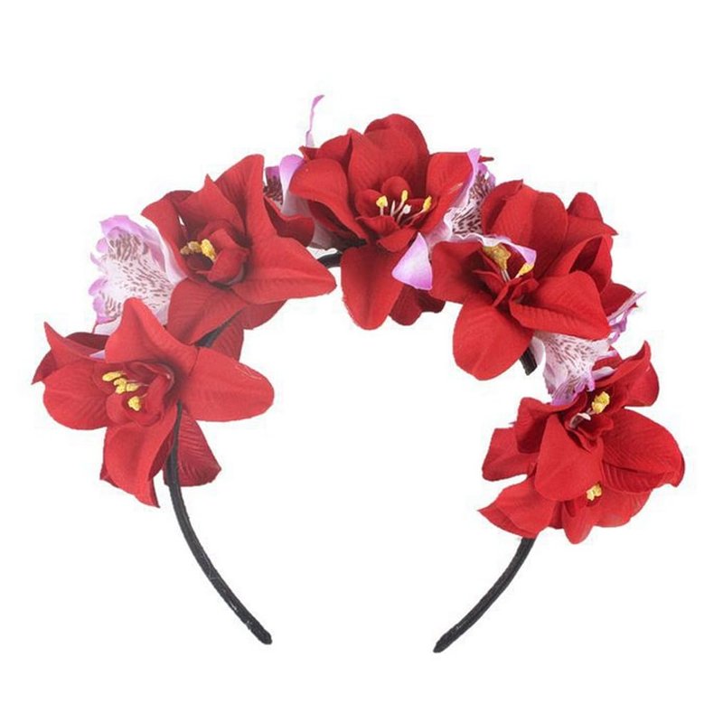 Mexican Flower Crown Headband Halloween Hairband Rose Flower Crown Headpiece Floral Hair Accessories for Carnival Party Costume