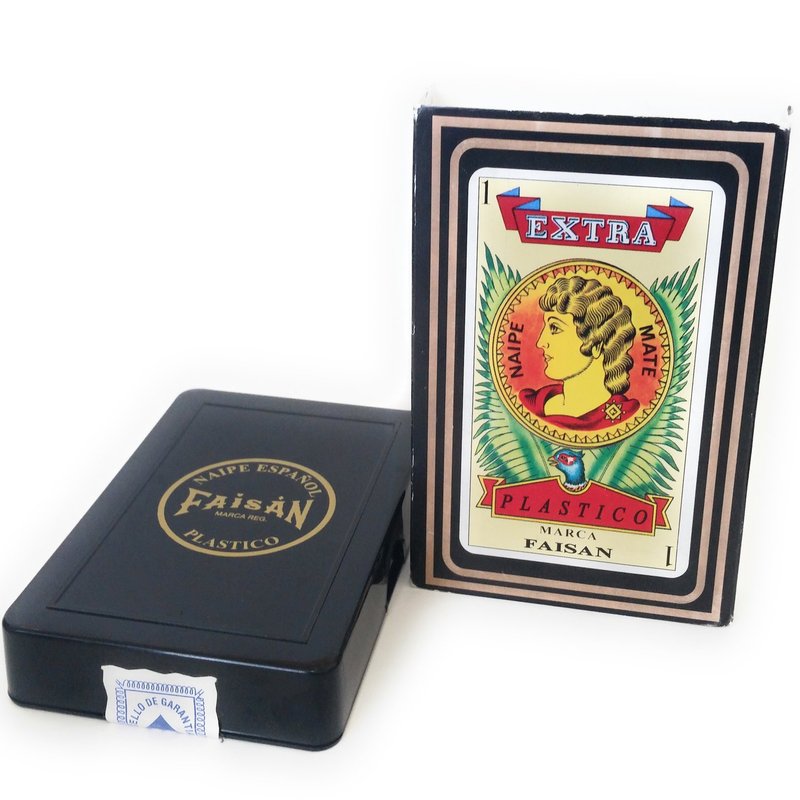 Barajas Espanolas En Caja Plastica, Spanish Playing Cards, Plastic Case The Spanish playing Baraja are a method of fortune telling. Interpretations vary according to the sources but this does not matter, because it is the cartomante must assign each letter the interpretation one you like. Besides some fortuneteller interpret the letters as if they go right or vice versa. Likewise it was considered the cups and coarse as beneficial while gold sticks and swords were more negative. It is true that in each suit there is good and bad cards. Gold cups and usually represent people with fair skin and blond hair and clubs and swords people from skin and dark hair. The so-called Spanish deck is a deck of 48 cards or letters, classified into four suits, each numbered from 1 to 12. More often than not have decks numbers 8 and 9, so only have 40 cards. The figures on Spanish playing cards correspond to the numbers 10, 11 and 12, and are called "jack", "horse" and "King", respectively, and, unlike the French deck, full body represented. 1 is called as many games, a name that comes from the Latin as, that means one. Some decks also include two jokers. The four suits are coins, cups, swords and clubs (in their respective ascending order). For certain games are divided into short sticks (golds and glasses) and long (clubs and spades). The frame around the figure has a sign on the shorter sides, to distinguish the post in question without displaying all the cards: in gold is a solid line in the glasses there is an interruption, the swords two and the three clubs. This signal is called "the look" and has left the expression: "I knew by the look". The equivalent in the French deck, there are the figures under the number. This deck is based on tarot cards, except that the 48 letters of the Spanish cards (which are called "minor arcana")
