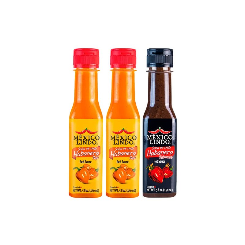 Mexico Lindo Hot Sauce Variety Pack | Includes 2 Bottles of Red Habanero + 1 Bottle of Xxxtra Hot | 5 Fl Oz Bottles (Pack of 3)