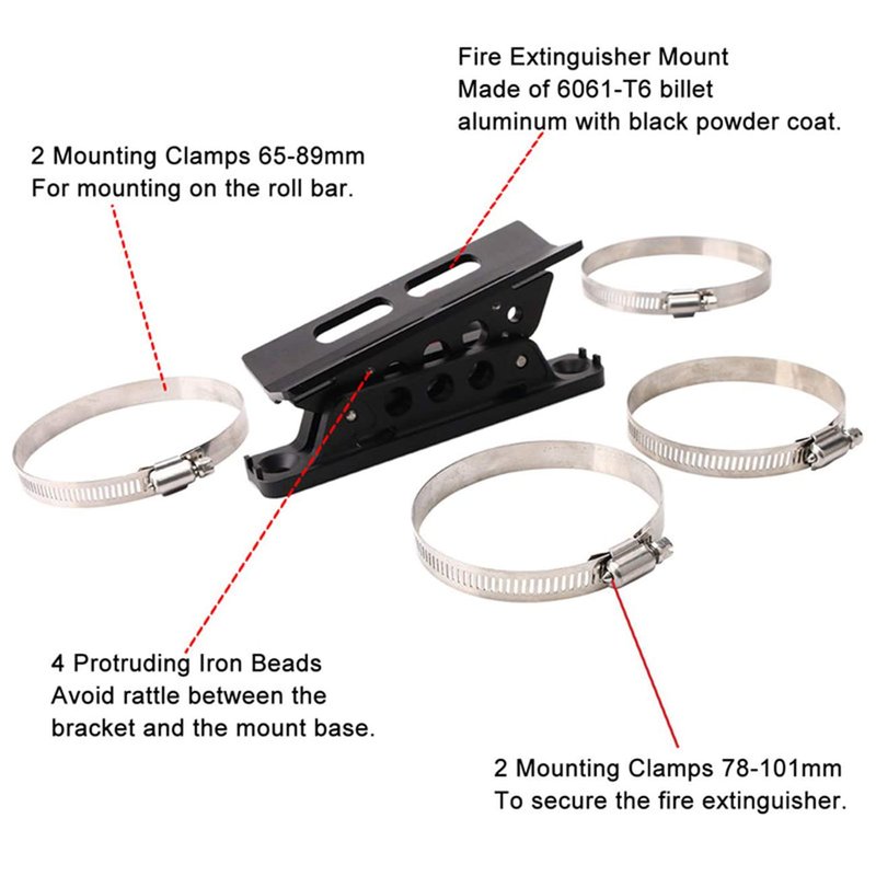 - ✔【Material】The fire extinguisher mount is made of high quality 6061-T6 billet aluminum. Instead of tear-apart-easily cloth or plastic.