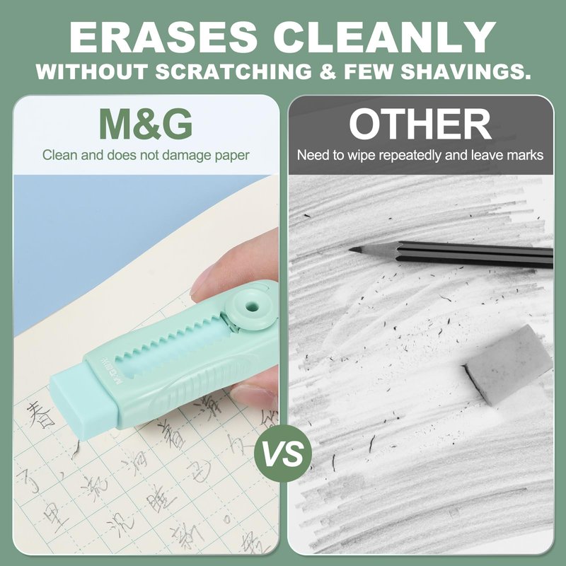 Without Scratching & Durable: M&G eraser can clean paper well, erase cleanly and will not scratch paper. Soft enough not to break, ensuring its durability and lifespan, and it can still maintain its effectiveness in long-term use.