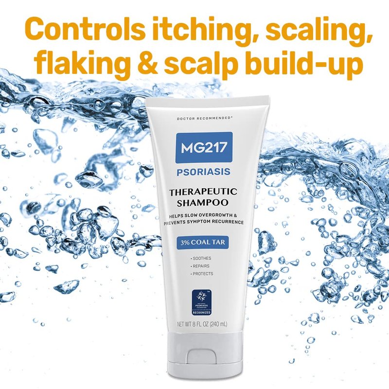 MG217 Psoriasis Shampoo with Coal Tar, Therapeutic Scalp Treatment, Controls Itching, Scaling, Flaking, Scale Buildup, Psoriasis Scalp Treatment, 3% Coal Tar Shampoo and Conditioner, 8floz