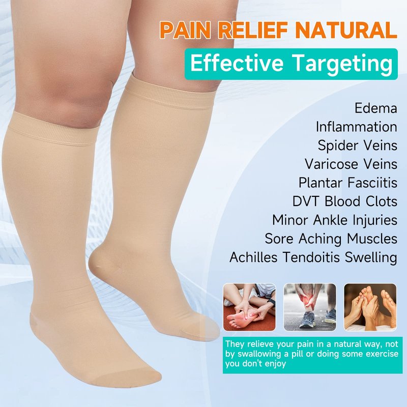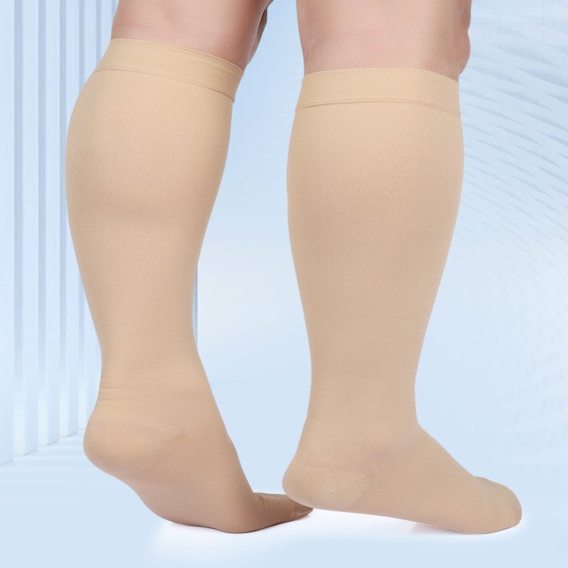 MGANG Compression Socks, Closed Toe, 20-30 mmHg Graduated Compression Knee High Support Stockings for Unisex, DVT, Pregnancy, Varicose Veins, Swelling, Edema, Shin Splints, 1 Pair, Beige XL