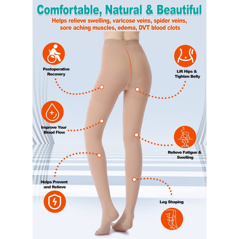 - ✅【Graduated Compression】- 100% pressure at ankle, compression decreases gradually up to calf (70%) and thigh (40%), decreasing towards the heart; It helps promote healthy blood flow, reduce and prevent swelling of the leg, maintaining positive circulation and leg health, keep you feeling invigorated each day! With our medical compression leggings you can also look slim and keep slim! Body weight-loss! And its level of compression is comfortable and safe, also perfect for recovery after surgery.