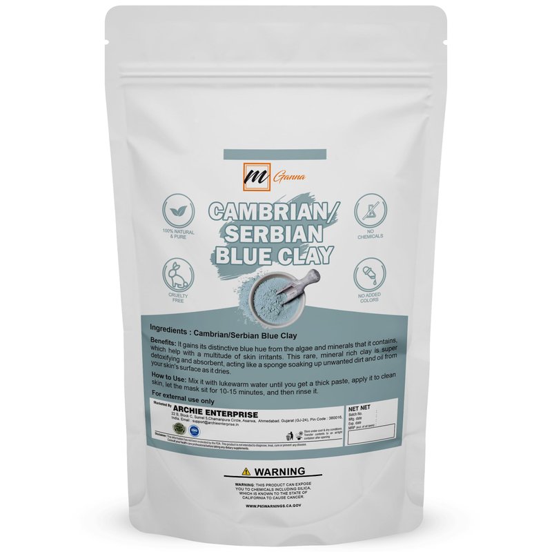 mGanna 100% Natural Cambrian/Serbian Blue Clay for Facial Masks, Creams, Body Wraps, Soft Peels and Scrubs, and Soap Making 100 GMS 0.22 LBS
