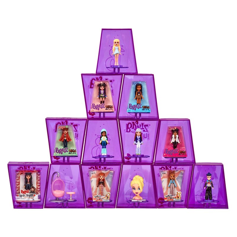 - REUSABLE & BLIND PACKAGING: Each mystery trapezoid capsule turns into a stackable display and comes with two Mini Bratz in mini replica packaging and a collector’s guide! Each package is blind so you won't know which figures you get until you unbox them!