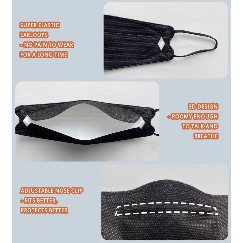 - These KN95 face masks are made of skin-friendly non-woven fabric that will not irritate your skin, highly elastic ear loops and an adjustable nose clip to ensure a comfortable fit and no strain on your ears
