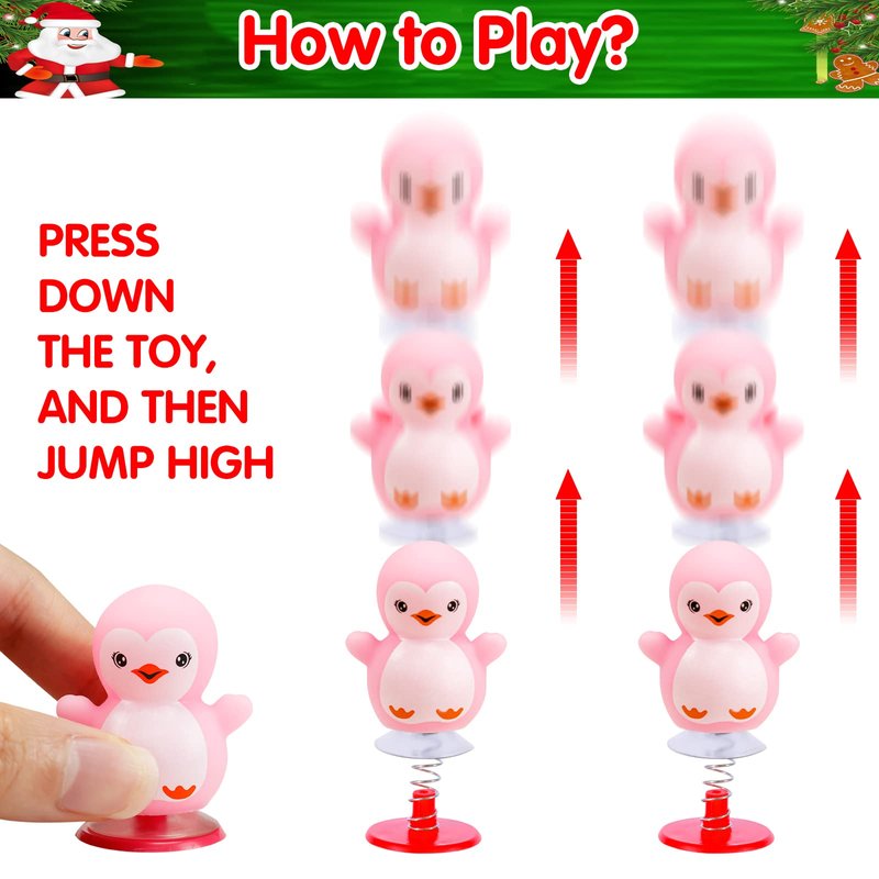 - Christmas Toys: Each player presses their own popper toy at the same time, then hands off, whose toy jumps high who wins. The funny jumping spring toys are fun and effective at stimulating a children's curiosity. Kids can so much fun playing those jumpers toy, full of anticipation, surprise and laughers. It can help improve imagination, decompress and family communication
