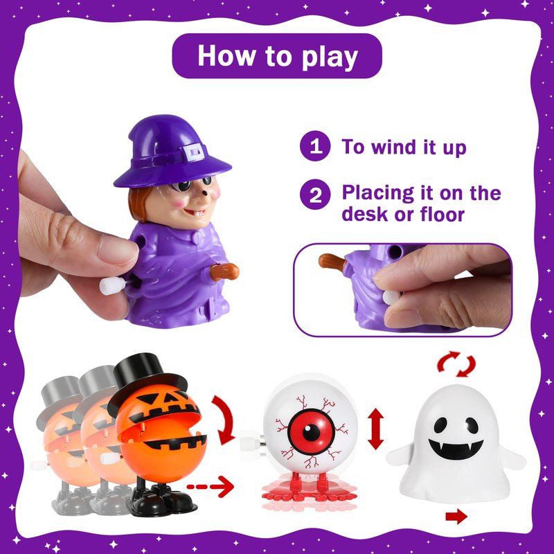 - Wind Up Toys: Super value with 24 pieces of Halloween themed design wind up toys set. Get the Halloween Wind Up Toys for kids, hope them enjoy their Halloween party.