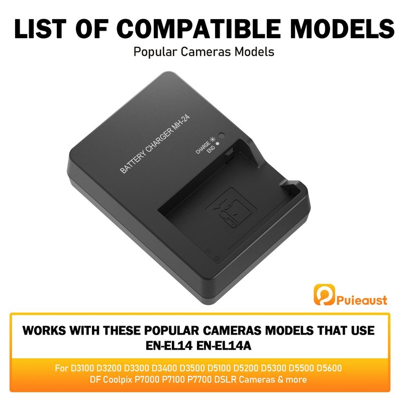 - Compatible Models: The MH-24 camera charger compatible with Nikon EN-EL14 EN-EL14A Battery for Nikon D5300 D3400 D5500 D5200 D3100 D3200 D3300 D3500 D5600 D5100 DF Coolpix P7800 P7700 P7100 P7000 Camera Power Supply. Reminder: please check compatibility before purchase