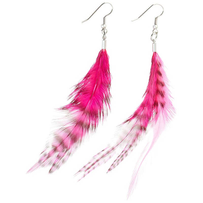 Mia Feather Earrings, Natural Feathers For Pierced Ears, Hypoallergenic, 5 Inches Long, Hot Pink