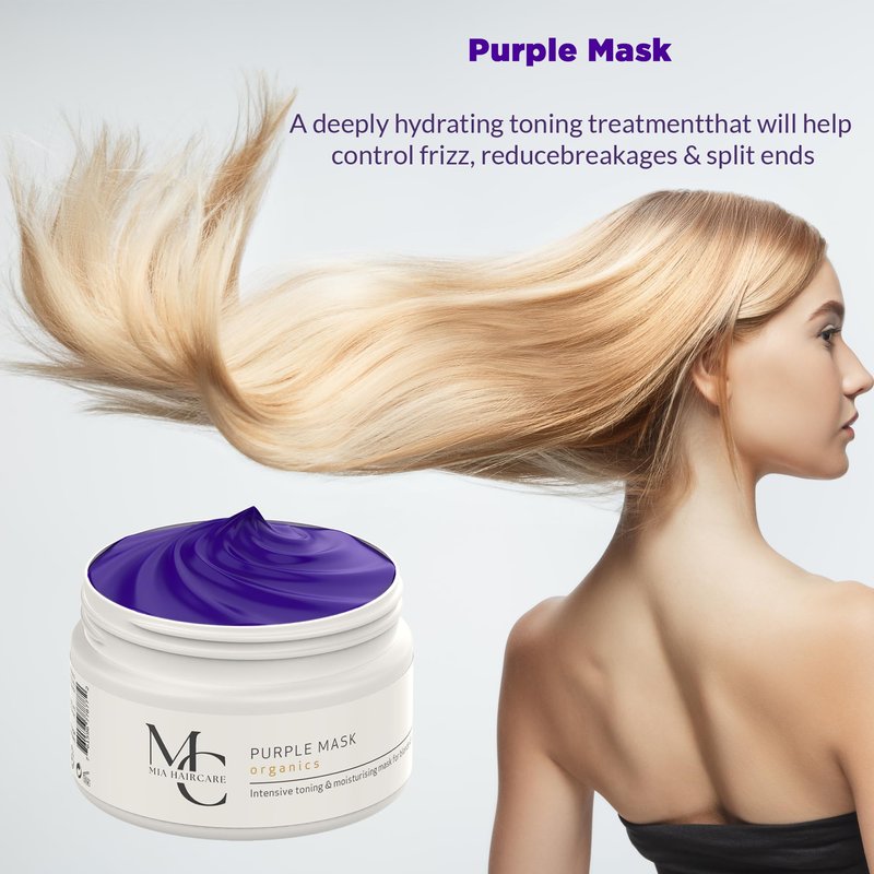 Mia Haircare Purple Mask - For Dry Damaged Hair and Growth, Deep Moisturizing Treatment Mask to Repair Split Ends, Natural Toner for Blonde and bleached Hair