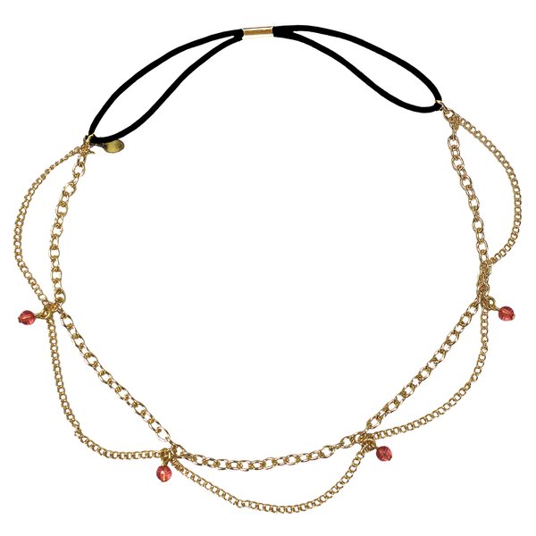 Mia Metal Chain Headband Headwrap, Hair Accessory, Beautiful Gold Chain with Peach Stones, for Women and Girls 1pc
