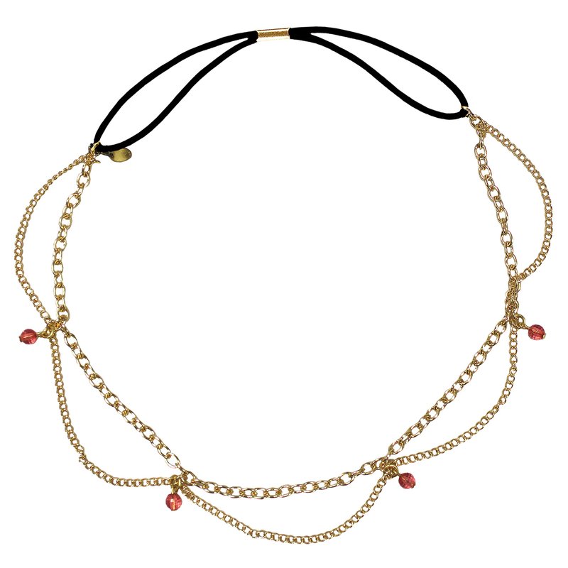 - Mia Metal Chain Headband is a fashionable headwrap hair accessory made out of metal chains and stones.