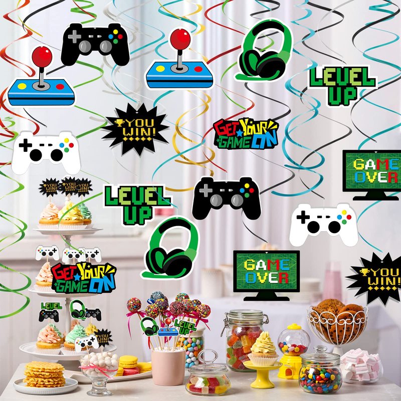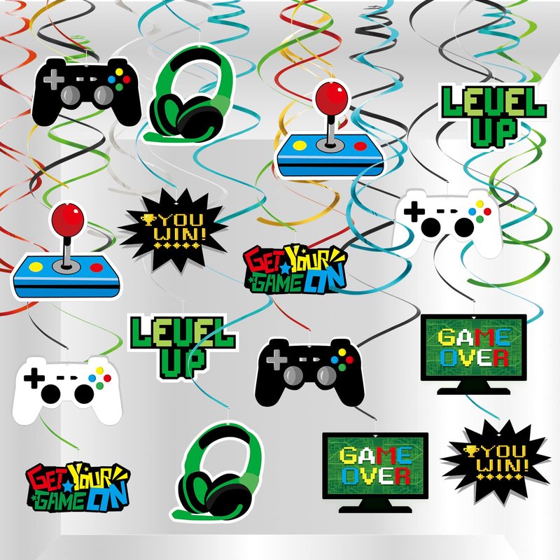 - Gamer Birthday Party Supplies: 34pcs foil swirl decorations, suitable for video game birthday party, mining themed party, arcade party, wedding party, baby shower and so on