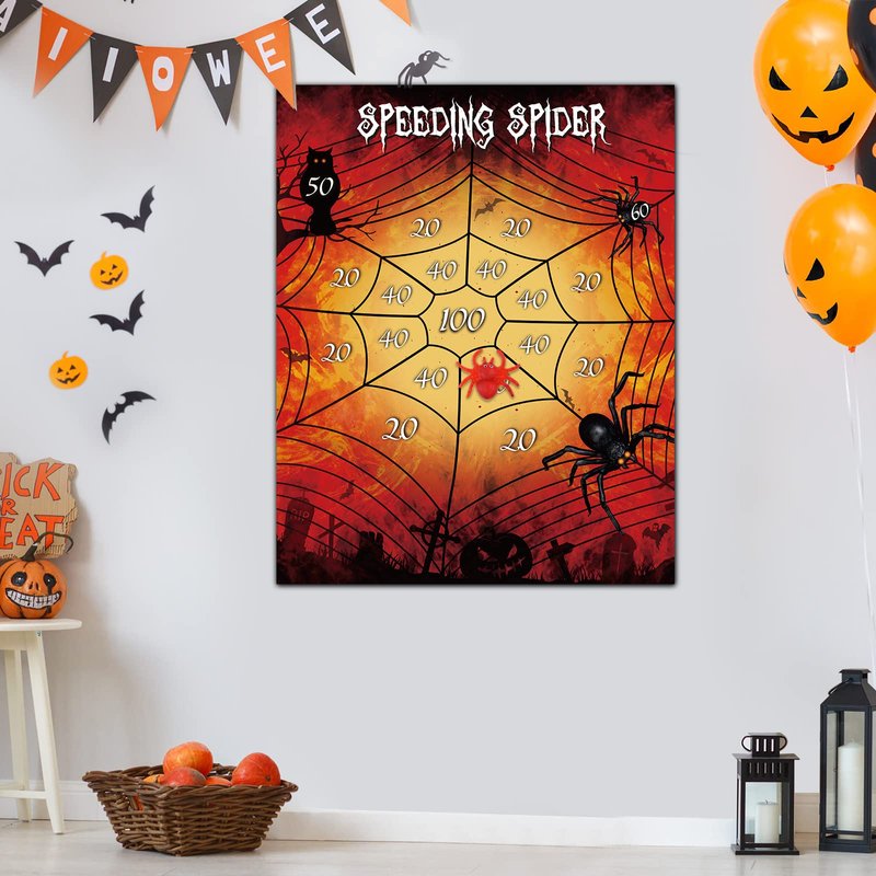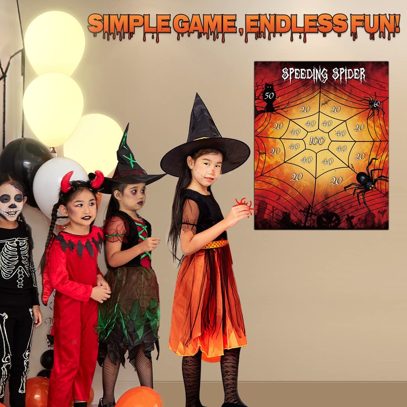 Superrr Fun Halloween Party Games! Awesome Birthday Party Games Christmas Party Supplies Games Classroom games GREAT CHOICE - If you are confused about the upcoming Halloween, Thanksgiving or your child's birthday, Choose this easy and fun product as a gift or party game! Material: paper Color: colorful Package include: 1x Large Poster 2x Sticky Spider 12x Dot glue Poster Size:88*70cm/34.6*27.5in Feature: Oversized poster , Sticky spider toy , Easy to play, Fun for all age! Notice: Keep away from fire! *The stickiness of spiders can be restored by washing with water and drying in the shade.Do not absorb water with paper or towel ! *When not playing, please put the spider in a clean plastic bag to avoid long-term direct contact with the poster.Or the Oil on spiders will soak poster