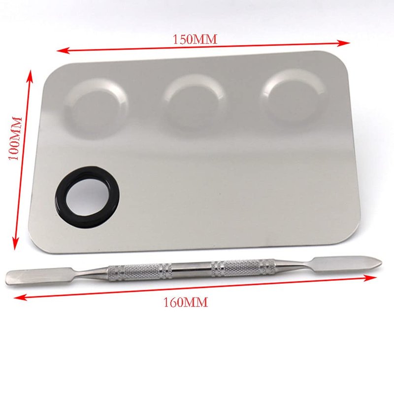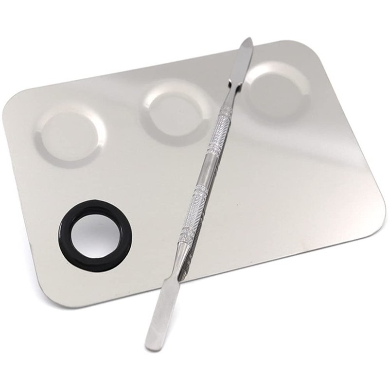 Miamay 6 by 4 Inches Makeup Palette Stainless Steel 3-dents Nail-art Cosmetic Artist Mixing Palette with 6 Inches Spatula Tool