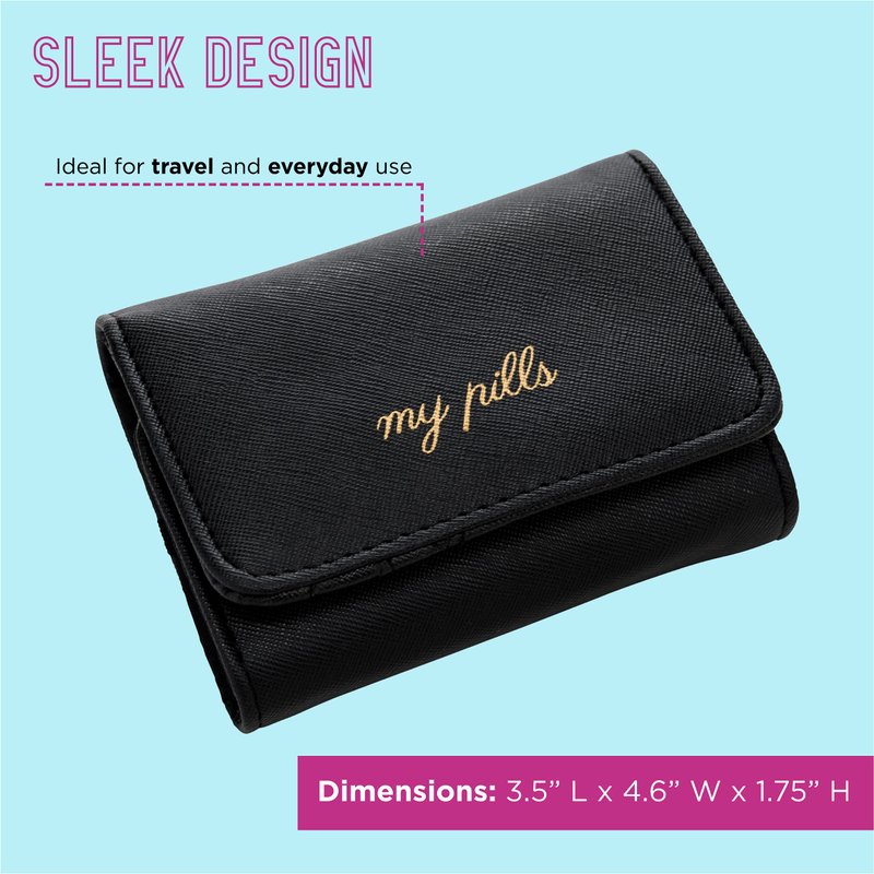 - SLEEK DESIGN – Ideal for travel and everyday use, the sleek & compact design of this pill organizer makes it easy to slip into any purse, backpack, or carry-on bag. Always be prepared with this travel pill organizer, measuring 3..5” L x 4.6” W x 1.75” H.