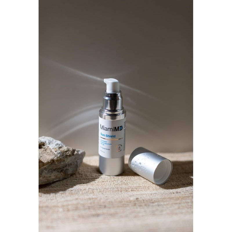 - SUN SHIELD BY MIAMI MD: Introducing Sun Shield– MiamiMD’s revolution in facial UV shielding technology. This one-of-a-kind, daily wear moisturizer with SPF creates a protective barrier, while nourishing ingredients help maintain skin elasticity, protecting your youthful glow.