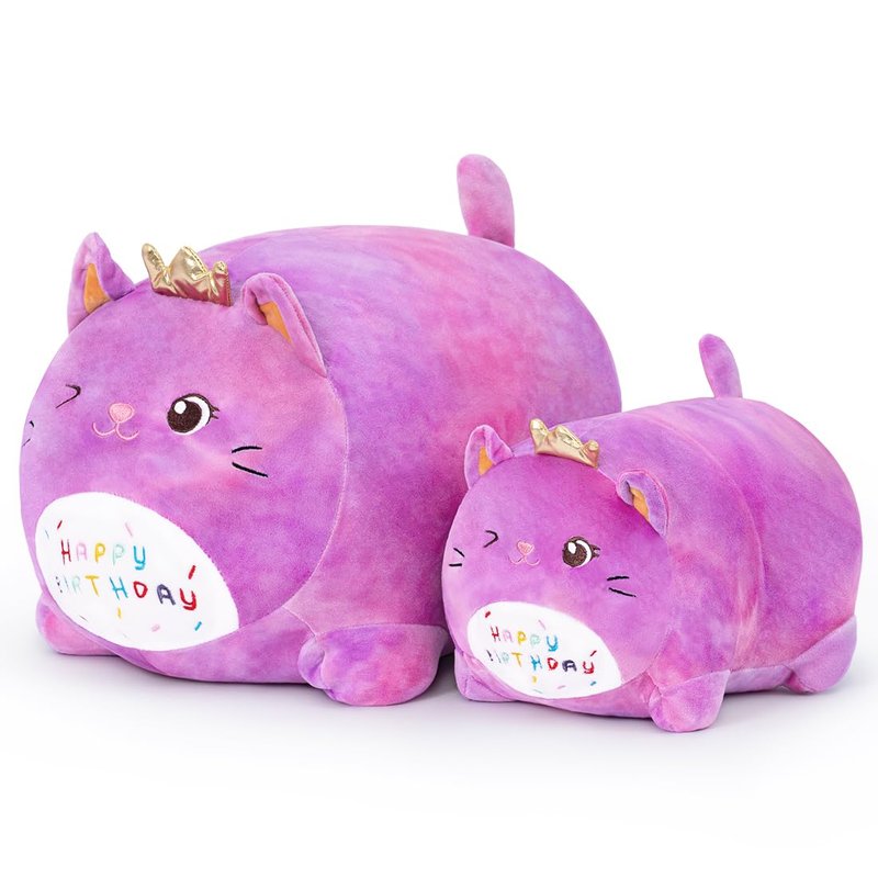 MIAOHAHA Happy Birthday Plush Pillow Toy,Soft Plush Cat Toy Plushies Gift for Kids and Girls(Purple Cat,25cm/9.8in)
