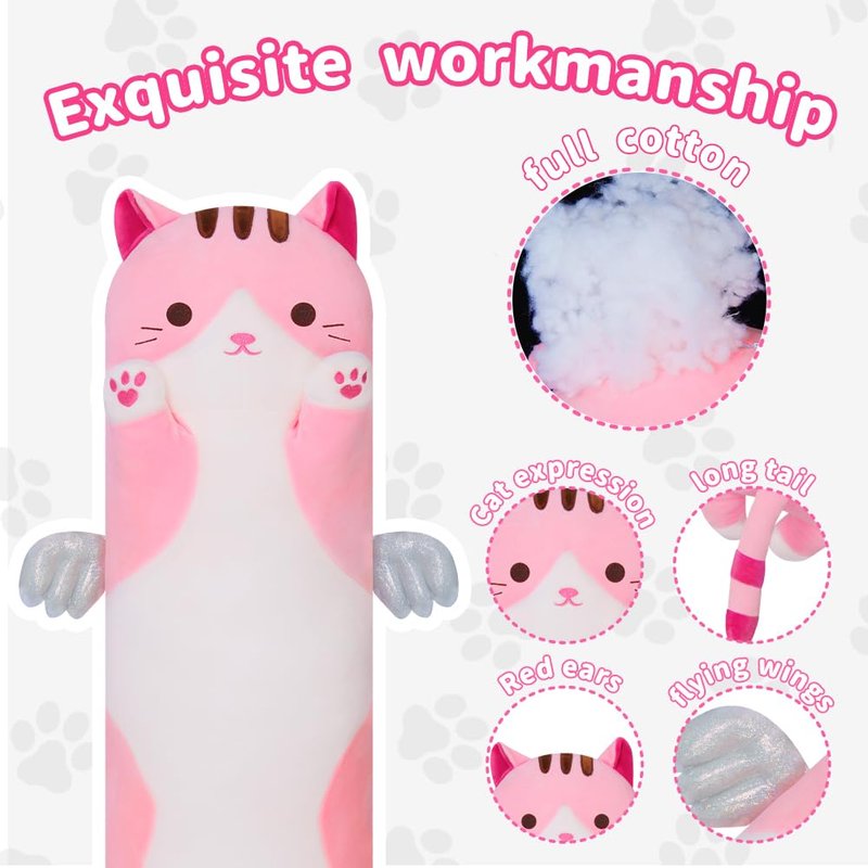 - SUPER SOFT PLUSH CAT TOY PILLOW: The plush cat toy pillow is made of high quality plush, PP cotton, super soft fabric, adorable, comfortable and flexible.