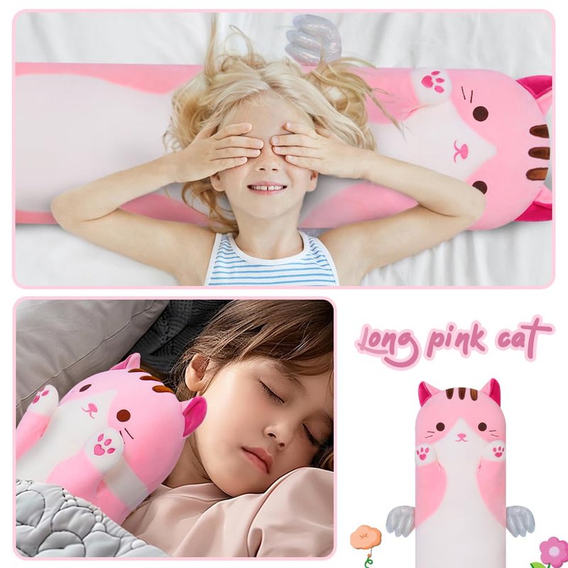 MIAOHAHA Long Plush Toy Cat Pillow Cute Plush Cat Toy Doll Stuffed Animal Cat Hugging Pillow for Sleeping Gift for Kids and Girls(Pink,50cm/19.6in)