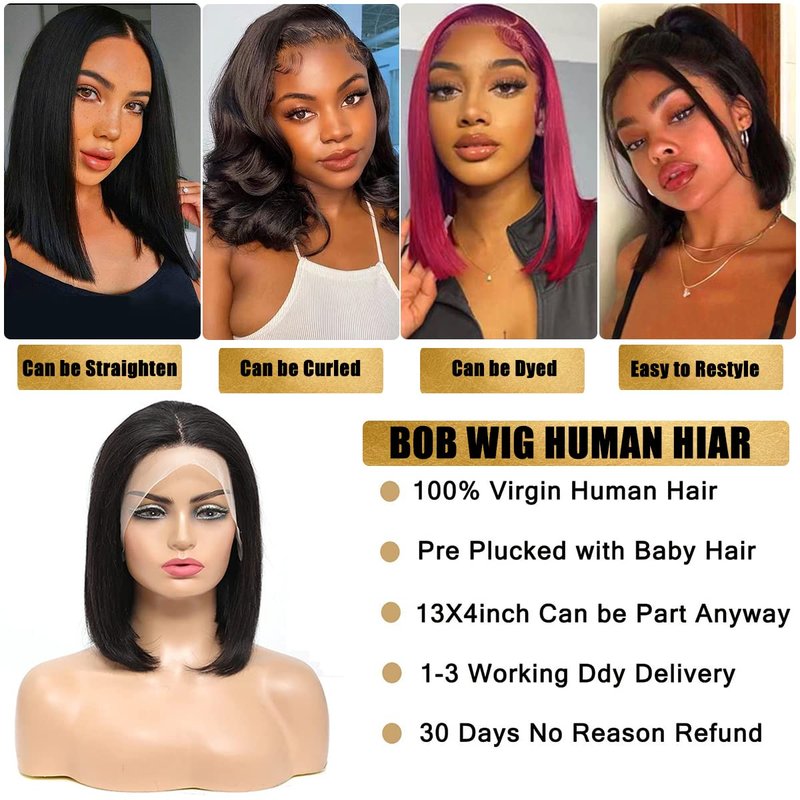 - Hd Lace Frontal Bob Wigs Human Hair Features:150% Density transparent lace front bob wigs pre plucked with baby hair, No tangle, Minimal shedding,Natural hairline,Touch soft,Can be Straightened, Curled, Dyed, Permed, Restyled as your own hair