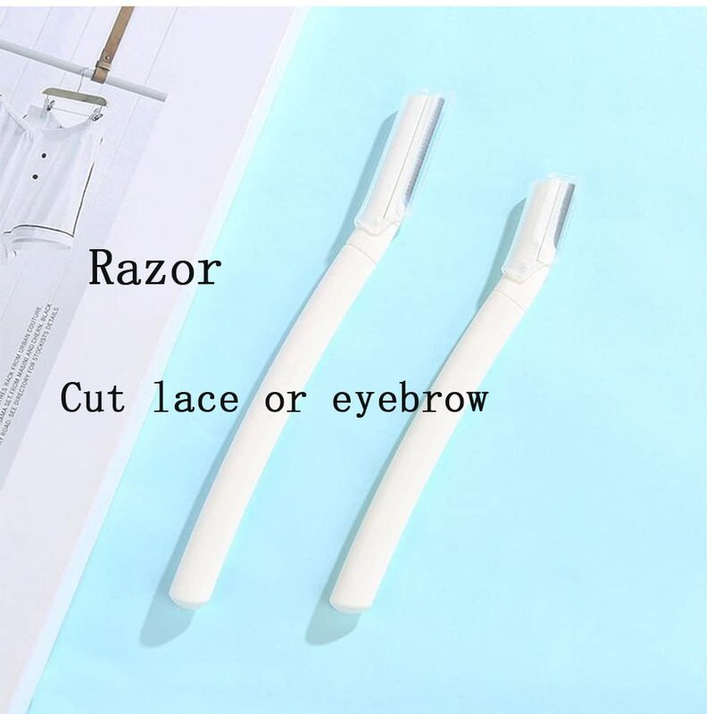 - Quantity: This kit includes 8 PCs items. 1*Razor, 1*Scissors, 1*Edge Brush, 2* HD Wig caps, 1*Detangle Brush, 1*Melt band, 1* Tweezer, 1*Tail Parting Comb
