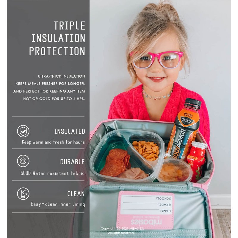 - ❤ TRIPLE INSULATION PROTECTION - Made of ultra-thick insulation, this girls lunch bag keeps meals fresher longer and keeping any item hot or cold for up to 4 hrs. It is perfect for school or outdoor picnics, make your girls enjoy delicious and nutritious meals.