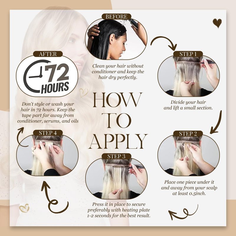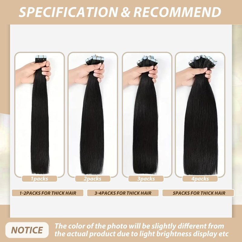 - 【High-Strength Tapes & Easy to Take Out】-- US made blue tape, double-sided, re-usable, quality tape. hypoallergenic, durable, not easy to fall off. The tape last up to 4-18 weeks, can be replaced as needed. Tape will be stronger after moderate heating. The transparent tape is imperceptible, and it blends perfectly with the hair. Invisible and comfortable, you can change the length or thickness instantly, no one can find your secret.