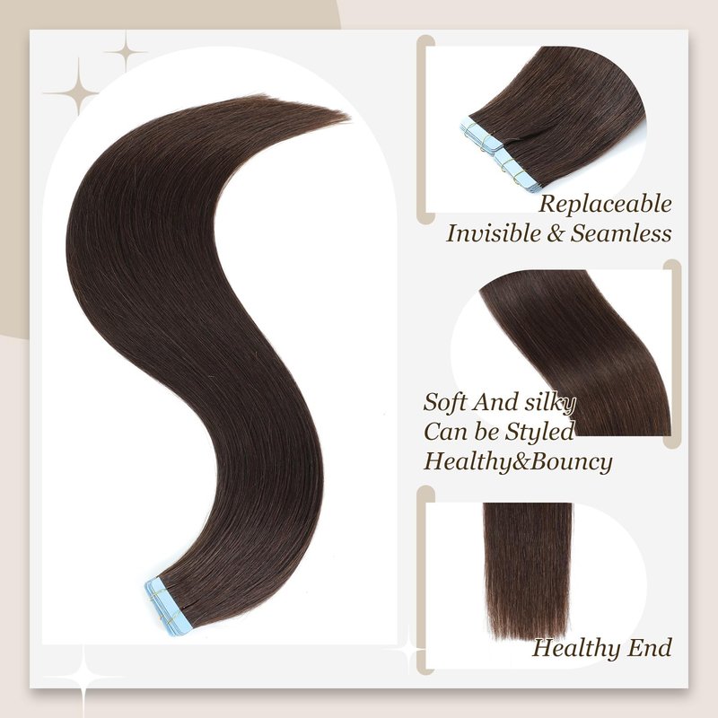 MIBOLT Tape in Hair Extensions Human Hair Double Sided Tape for Skin Weft Straight Hair Extensions Tape in Straight Seamless Skin Weft Remy Tape in Hair Extensions(18Inch #2 Dark Brown)
