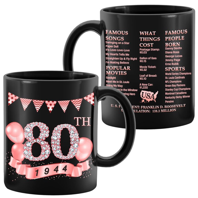 MiCa Birthday Gifts for Women, 1944 Old Time Information 80th Birthday Mug, 80th Birthday Gifts for Women, Birthday Party Decor, 80th Birthday Mug