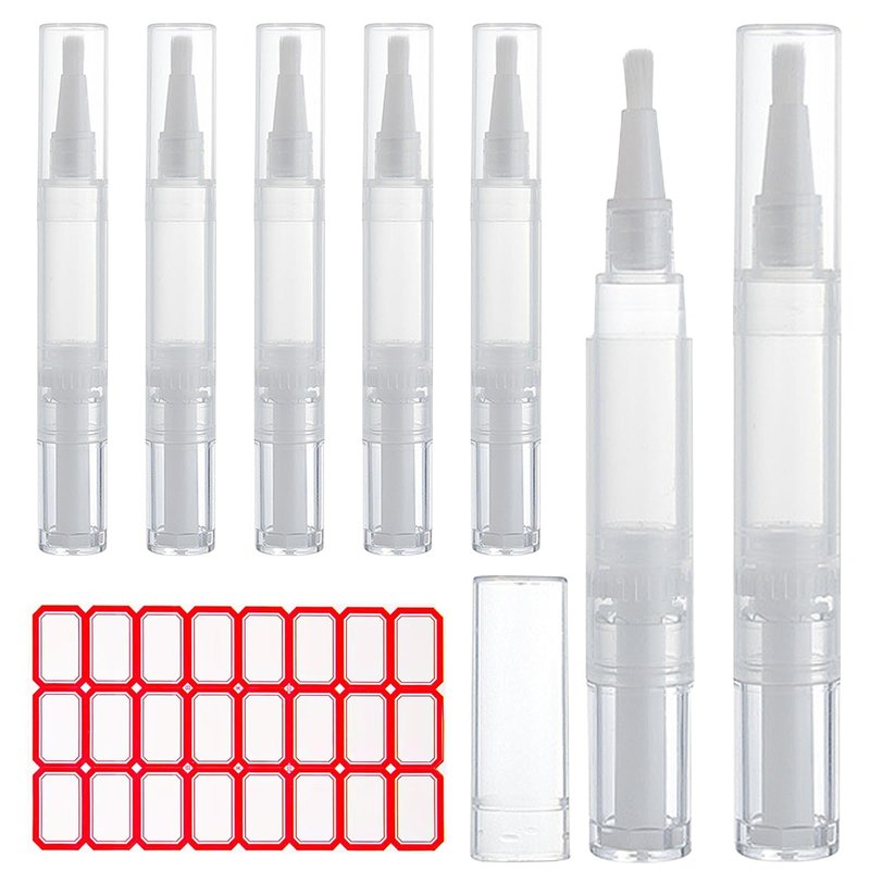 - Convenient Design:empty cuticle oil pens Each pen holds up to 5ml of liquid, allowing for easy and controlled application with the soft brush tip.Transparent body for easy monitoring of liquid levels, with a twist-up mechanism that ensures precise application.