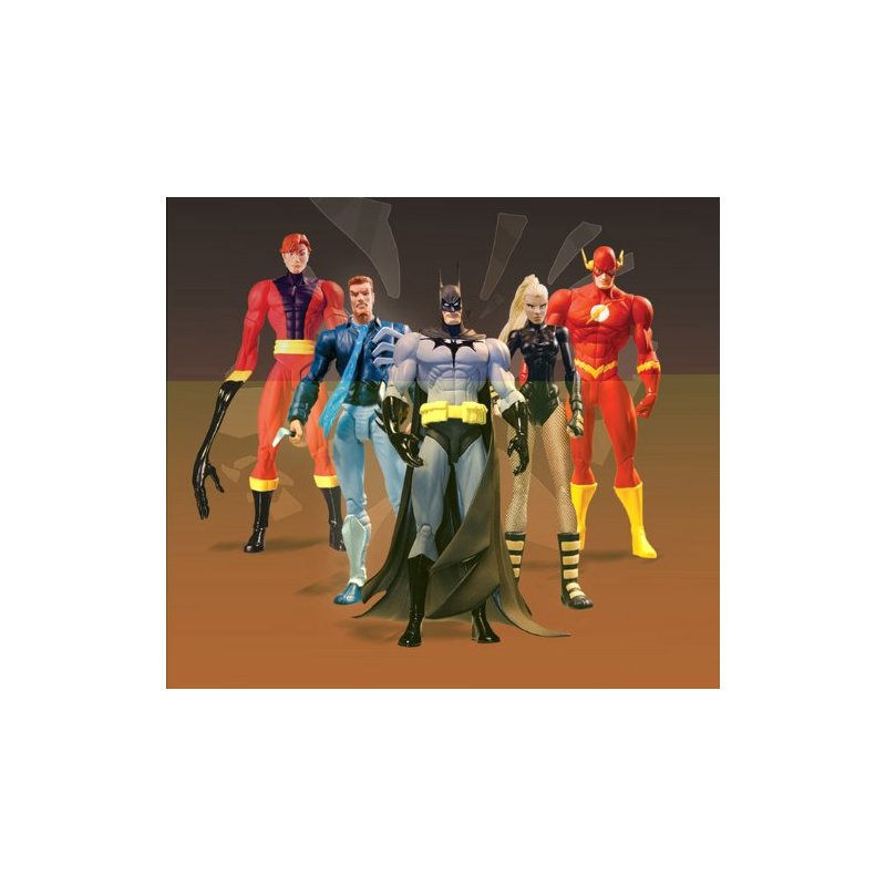 Set contains one each of Batman, Elongated Man, The Flash, Black Canary & Captain Boomerang.